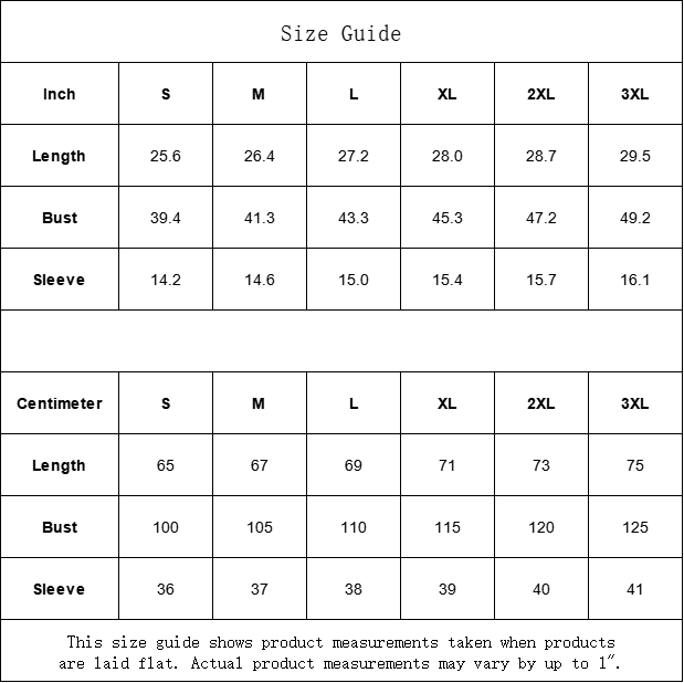 This size guide shows product measurements taken when products are laid flat. Actual product measurements may vary by up to 1".
