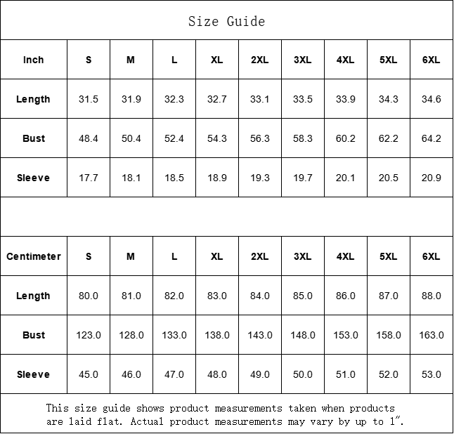 Centimeter S M L XL 2XL 3XL 4XL 5XL 6XL