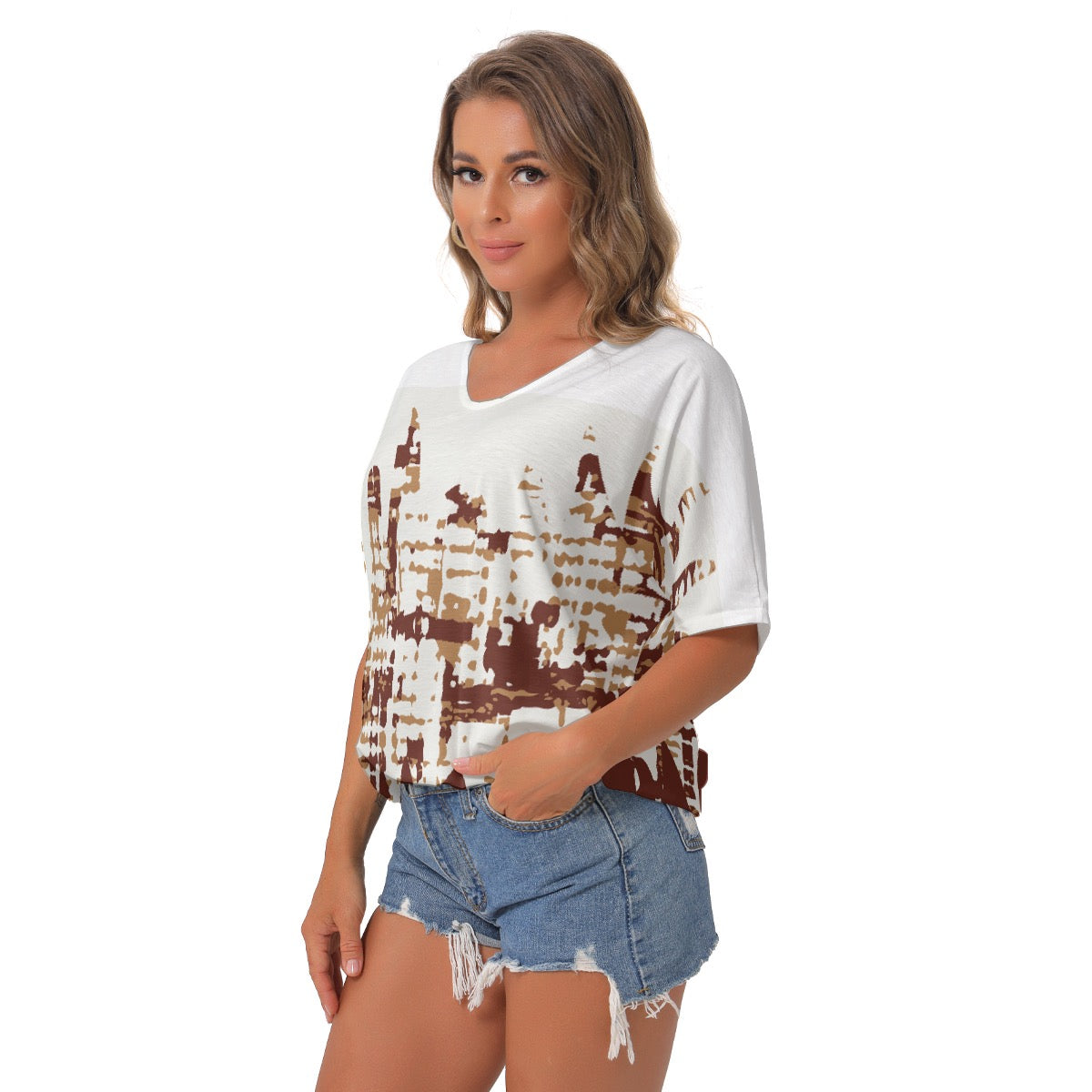 All-Over Print Women's Bat Sleeves V-Neck Blouse