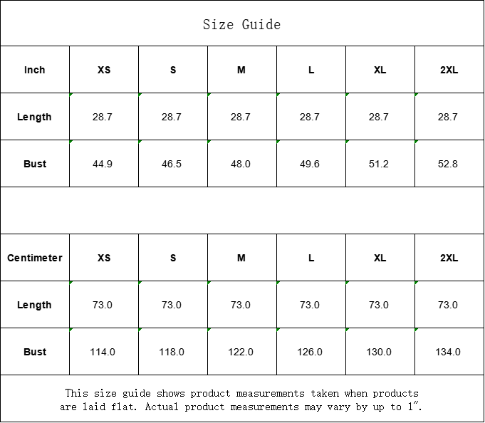 This size guide shows product measurements taken when products are laid flat. Actual product measurements may vary by up to 1".