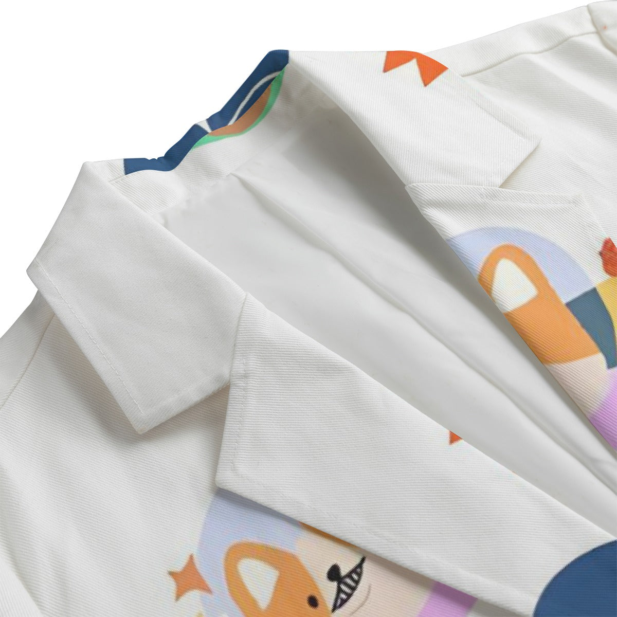 The classic version of the suit is made of polyester canvas fabric, which is soft, lightweight and stylish overall. Button closure and side pockets allow for proper storage.