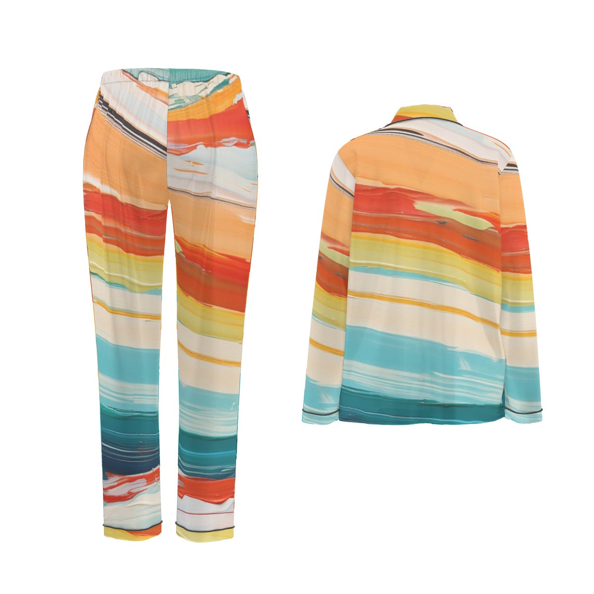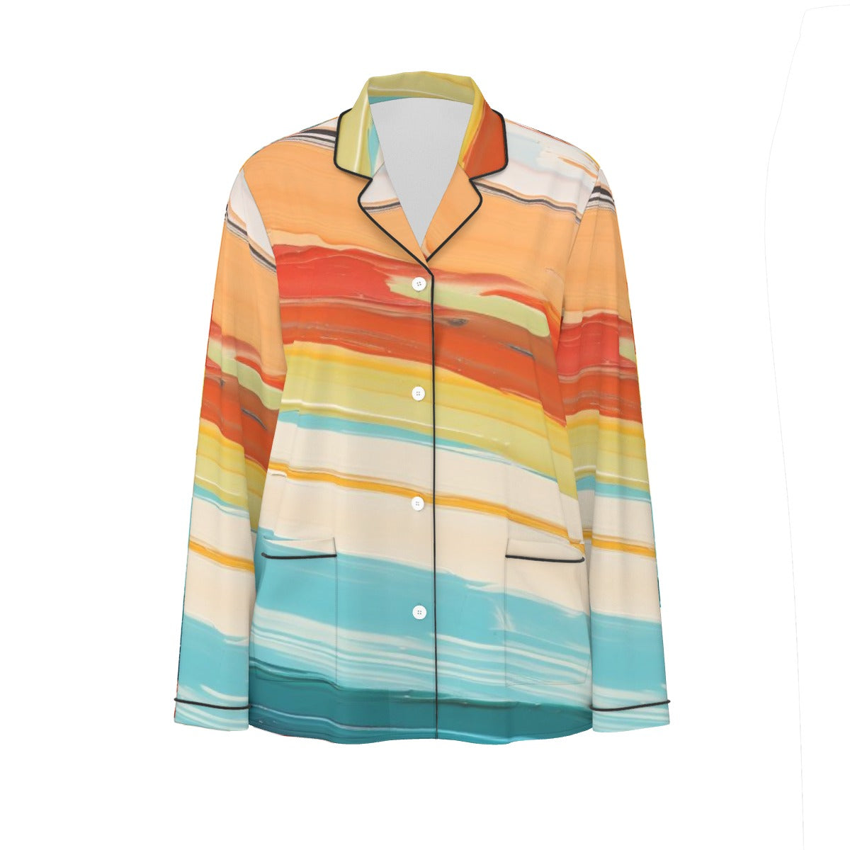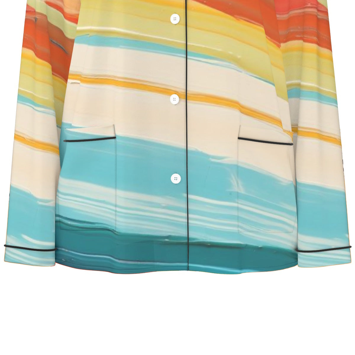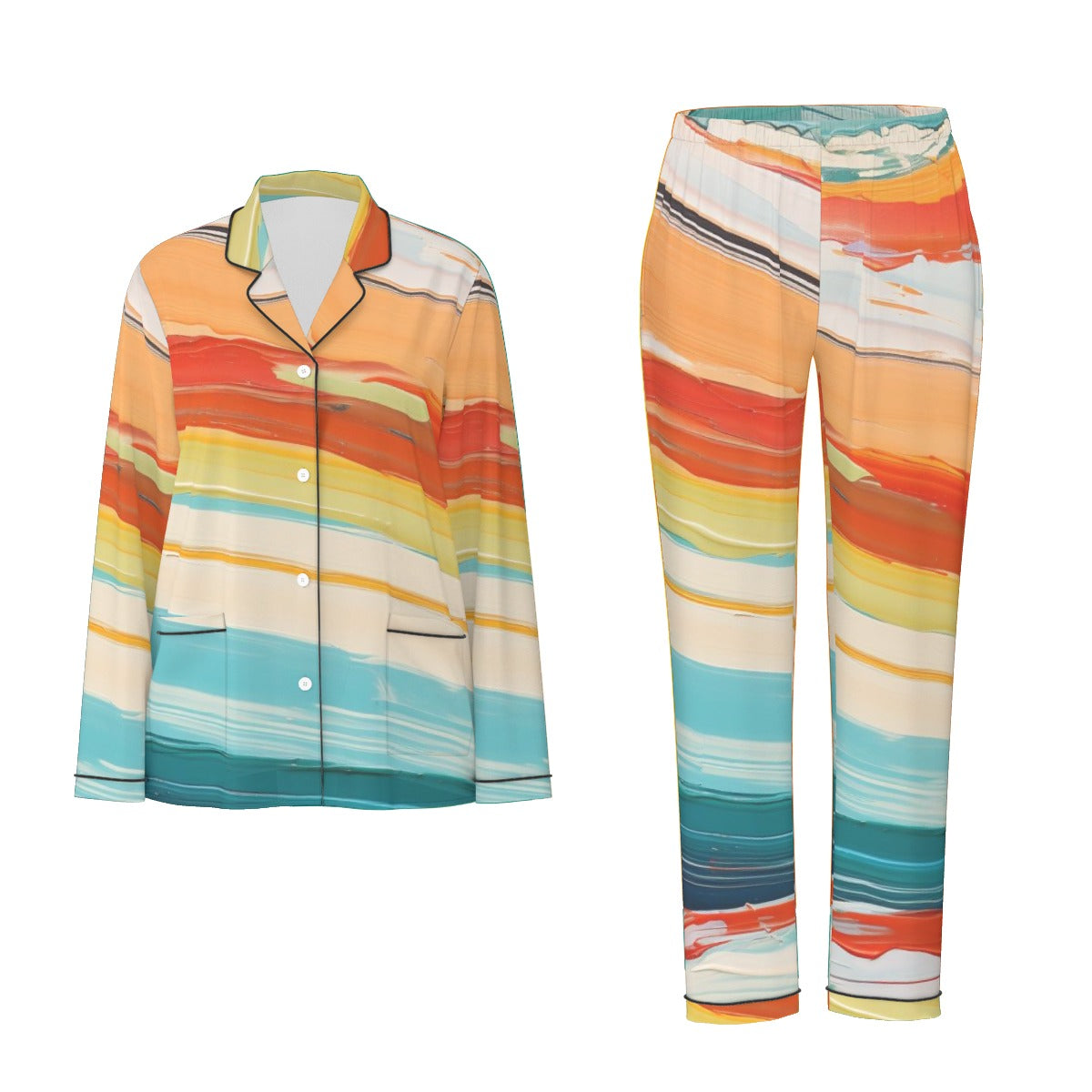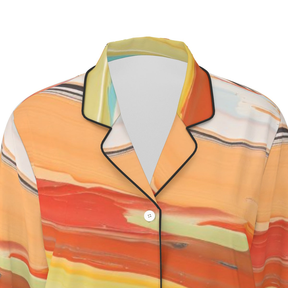 All-Over Print Women's Long Sleeve Pajama Set With Black Contrast Piping