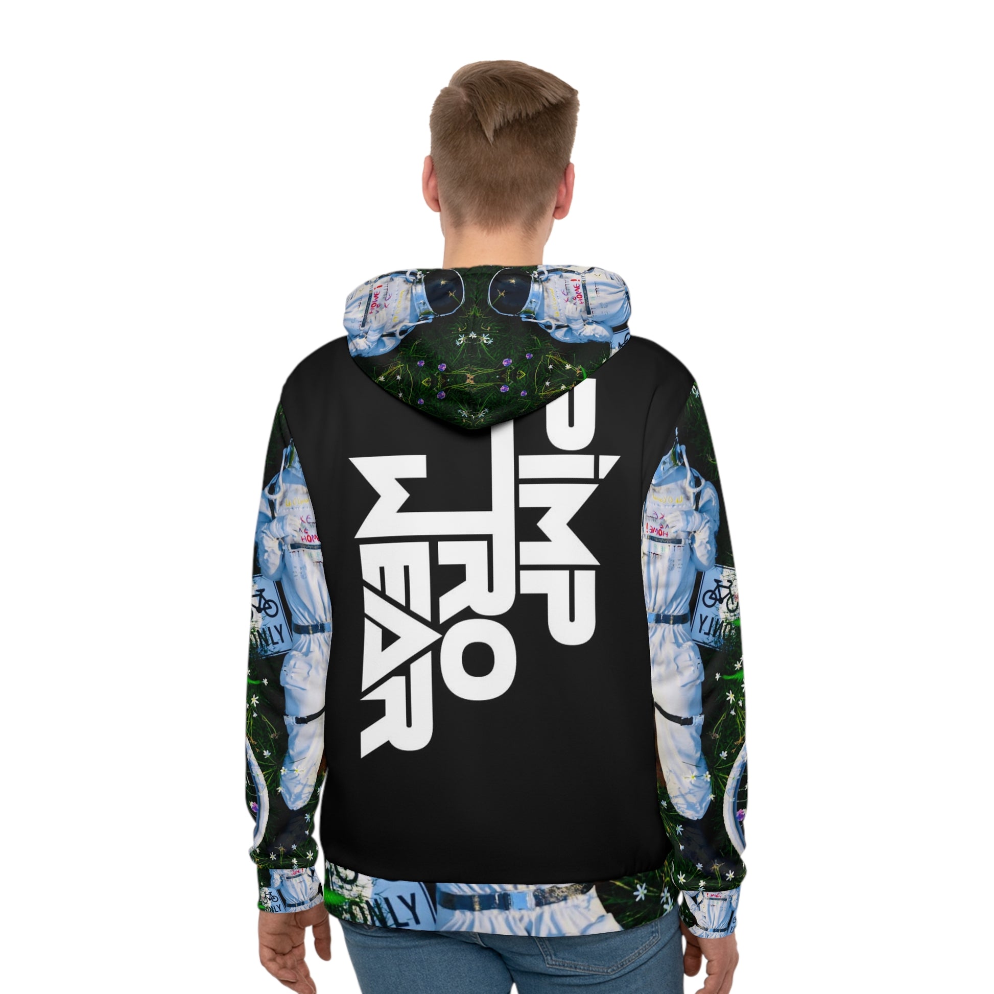 Introducing the Pimptrowear Hoodie - a revolutionary garment that takes style and comfort to a whole new level. This hoodie defies the norm with its unique and creative design, setting itself apart from the rest. Made with a special blend of high-quality materials, this hoodie boasts an eye-catching look that commands attention wherever you go. The fabric features a mesmerizing design effect that captures the essence of its inspiration, creating a stunning visual display that is sure to catch the eye. Its sleek and modern silhouette offers a tailored fit that flatters the body while providing maximum comfort. Versatile and functional, the Pimptrowear Hoodie is perfect for a variety of activities, whether you're out for a jog, running errands, or just lounging at home. This hoodie is for those who love fashion and innovation, and aren't afraid to let their unique style shine.