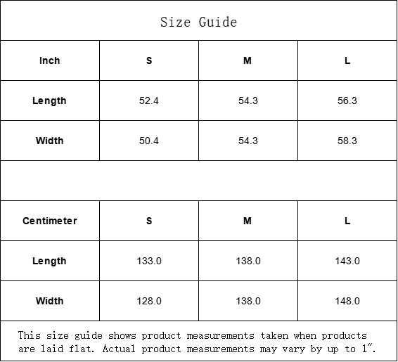 This size guide shows product measurements taken when products are laid flat. Actual product measurements may vary by up to 1".