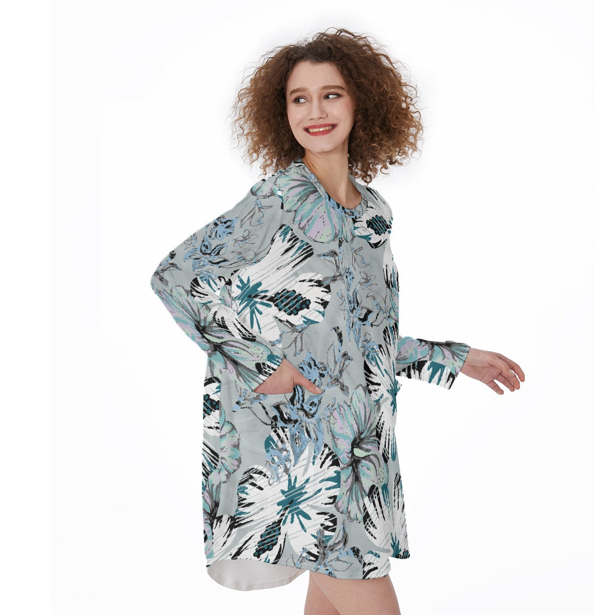 All-Over Print Women's Casual Loose Long Sleeve Dress With Pocket
