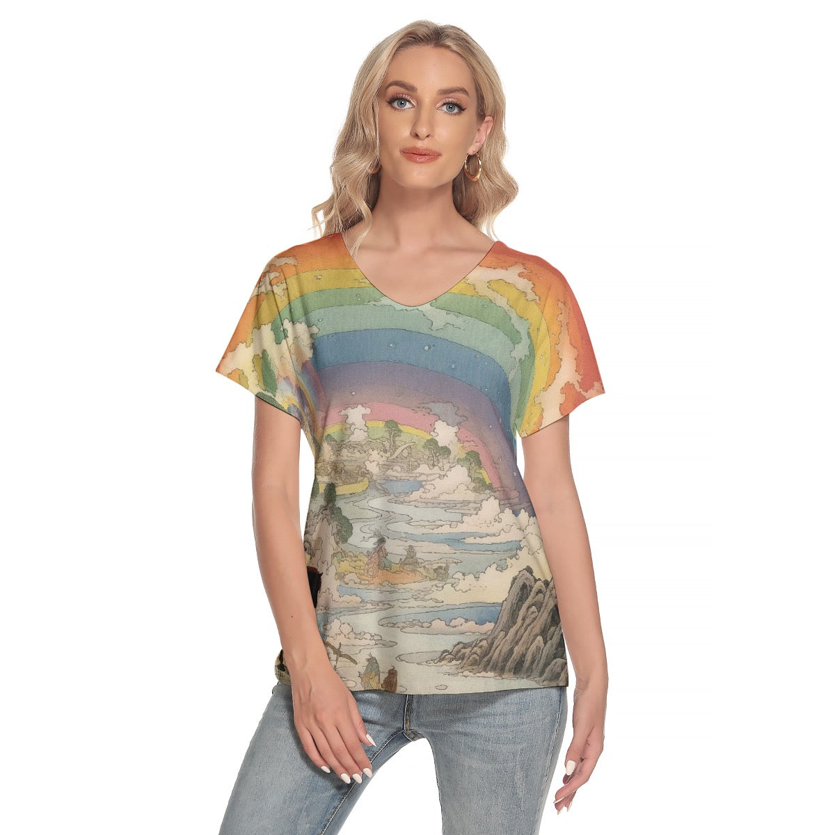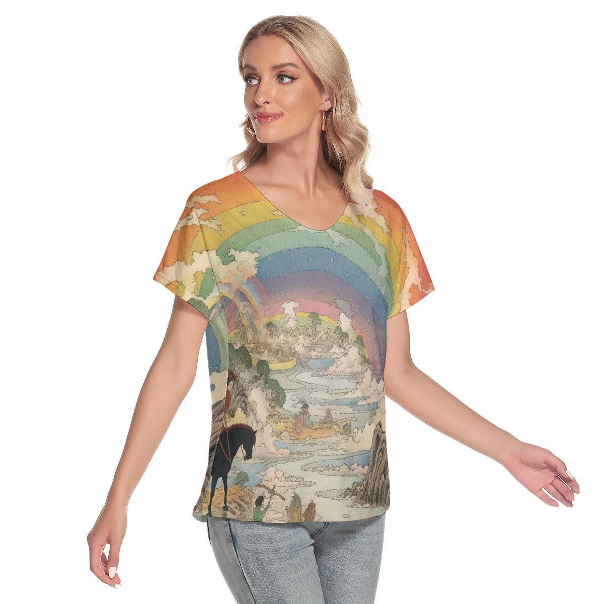 All-Over Print Women's Loose V-neck Short Sleeve T-shirt