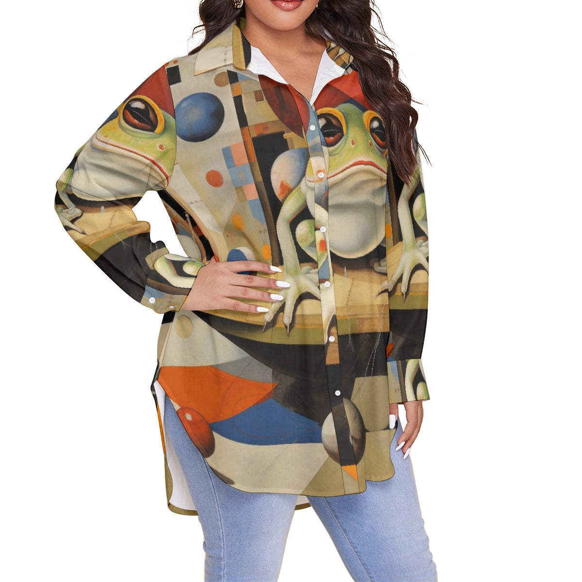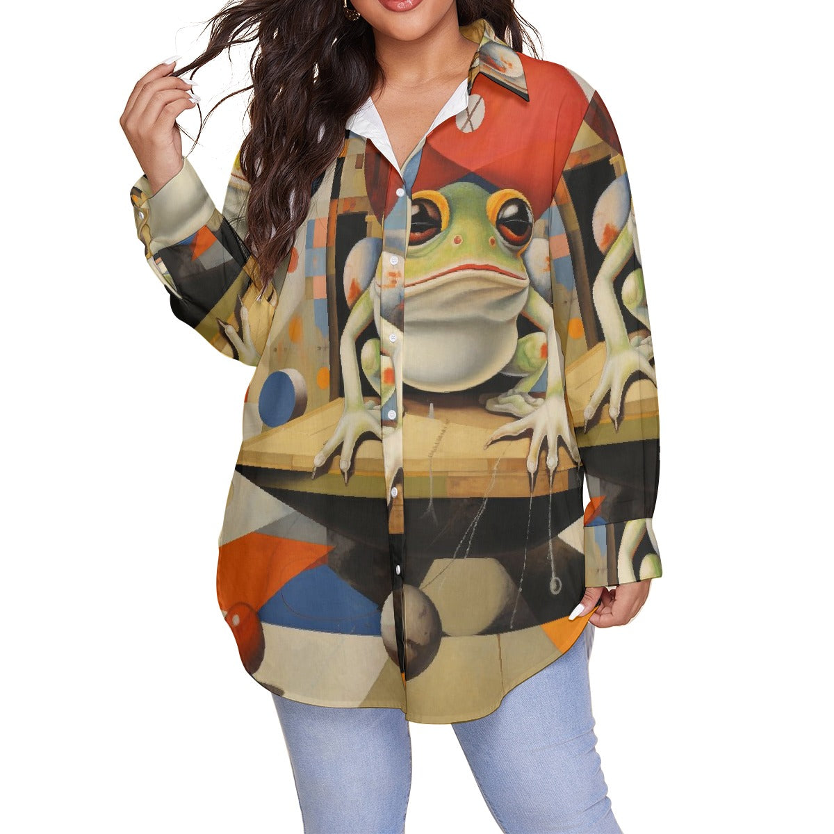 All-Over Print Women's Shirt With Long Sleeve(Plus Size)
