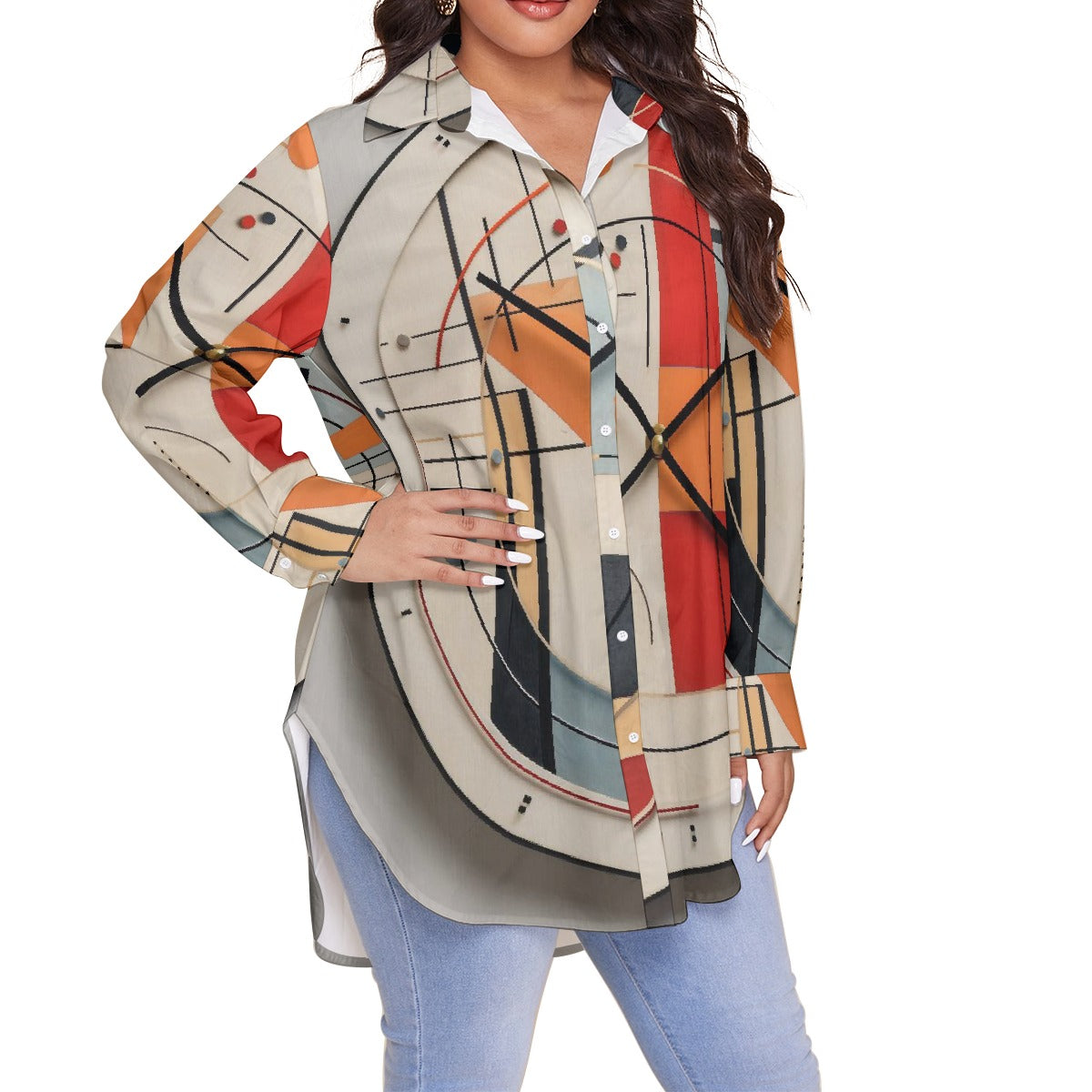 All-Over Print Women's Shirt With Long Sleeve(Plus Size)