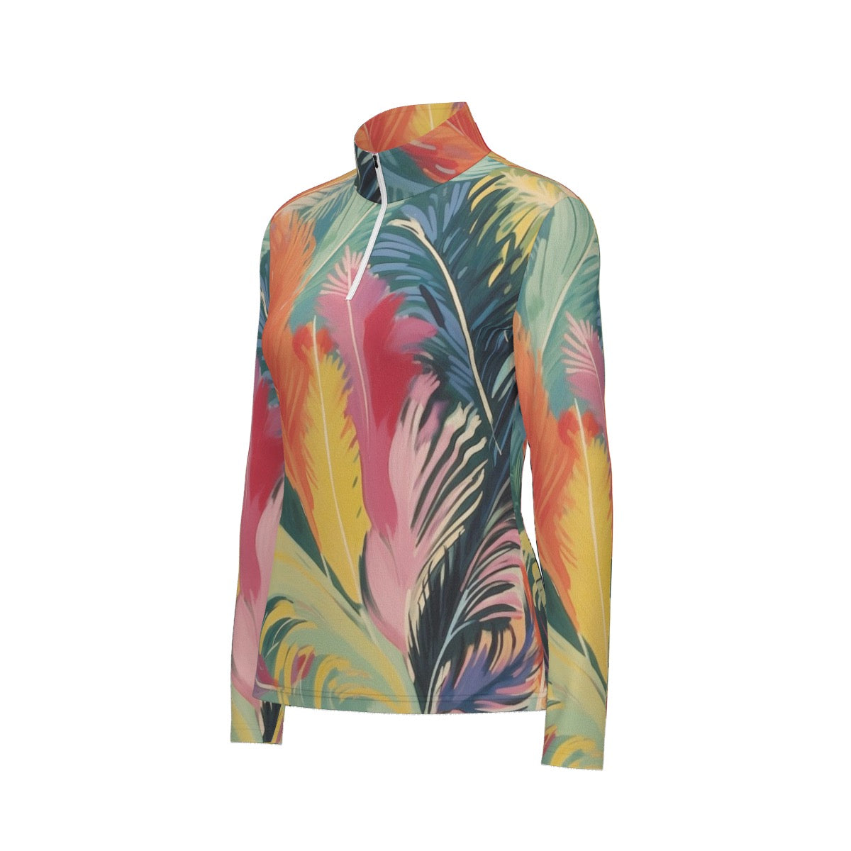 All-Over Print Women's Sports Collar Jersey With Long Sleeve