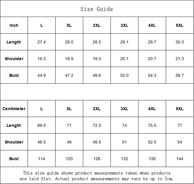 Centimeter L XL 2XL 3XL 4XL 5XL
