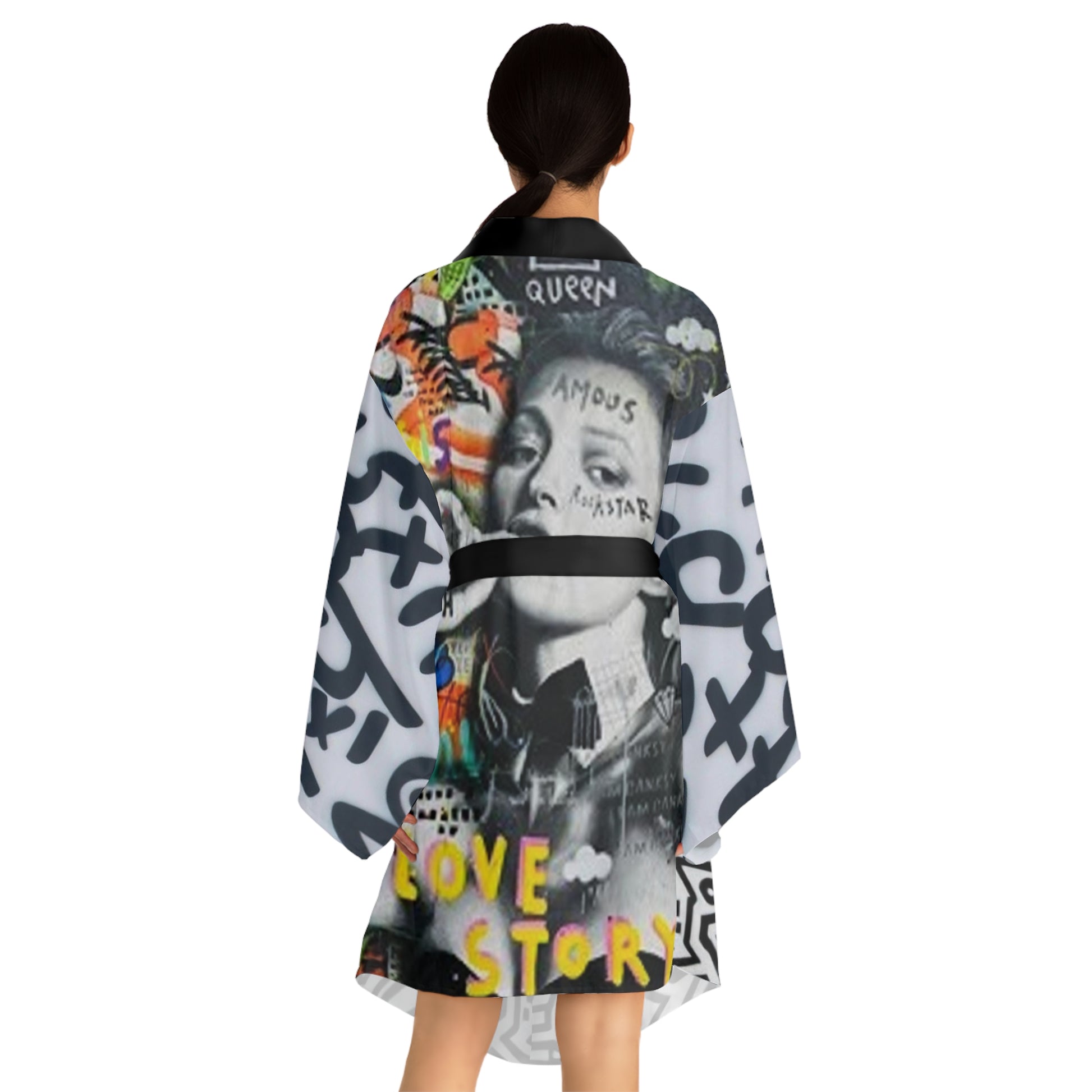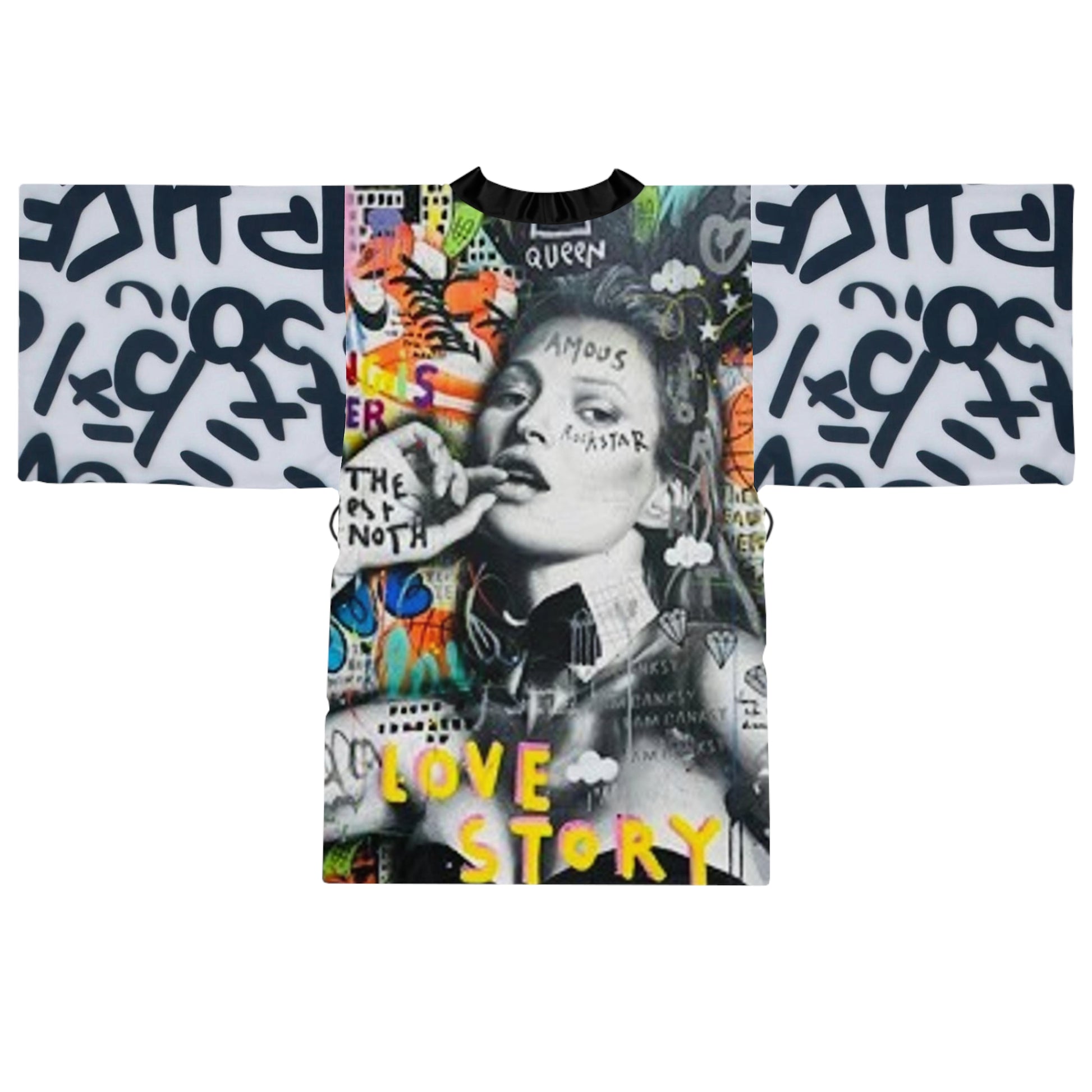 Behold an epiphany in the form of the Kimono Robe: electrifying visuals and mesmerizing colors, a gift from the gods! Slip it on and you become a masterpiece of potential escapade. Whether you're raising the bar for a special occasion or snoozing-in on a chill day, its mid-length silhouette, distinguished bell sleeves, and included belt are sure to solve all your Japanese-style blunders. Richly soft, its polyester material will smother you in lavishness and coziness. Ready to reach new sartorial heights? Score it now! 100% polyester. Light fabric (4.72 oz/yd²(160g/m²)). Dainty & multi-faceted. Smooth feel. P.S. Front edge & belt non-customizable, only comes in Black or White.