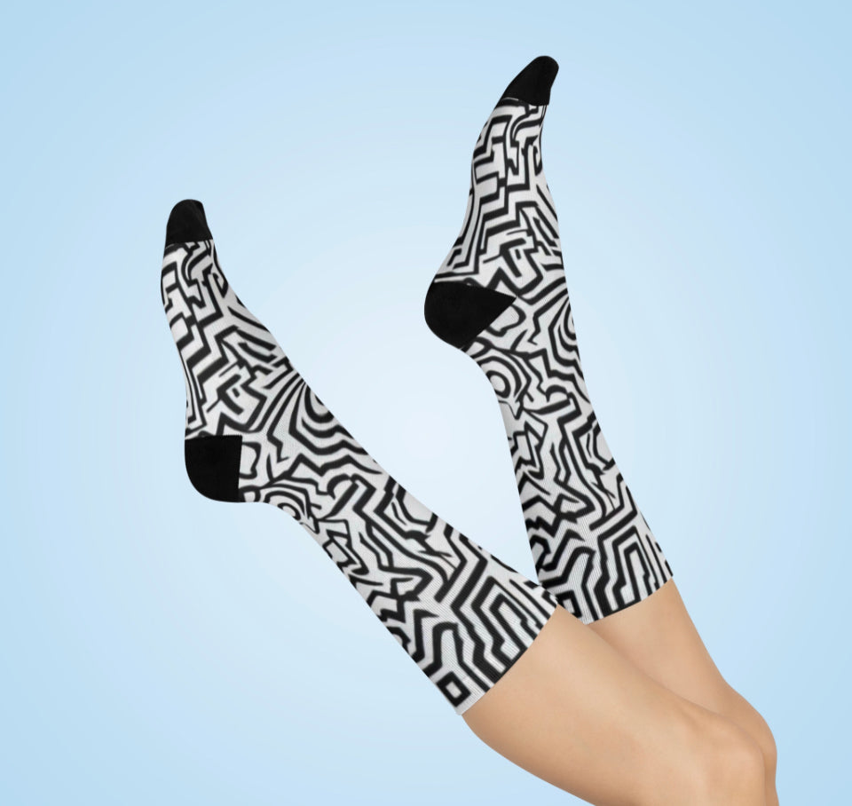Introducing our premium MAZING Crew Socks, the perfect blend of style and functionality. These one-size socks are meticulously crafted with your comfort and appearance in mind. The fully cushioned design ensures unparalleled comfort from heel to toe, while our advanced ArtComfort printing process guarantees sharp, flawless prints without any creases.