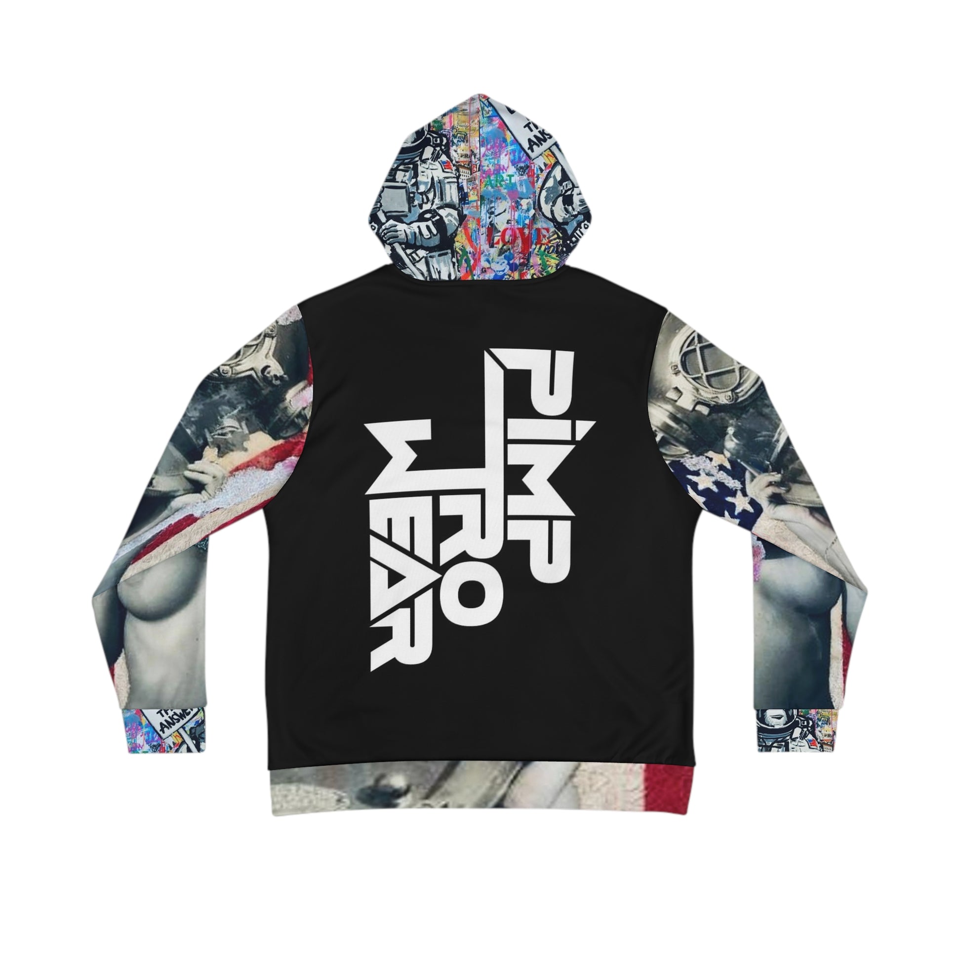 Introducing the Pimptrowear Hoodies - a daring, game-changing article of clothing that reimagines the norms of style and comfort. This hoodie defies convention with its one-of-a-kind, inventive design that sets it apart from anything else on the market. Meticulously crafted with premium materials, it boasts an eye-catching appearance that commands attention wherever you go. Its fabric features an entrancing visual effect that mirrors the allure of outer space, creating a captivating display that is bound to impress. Sleek and contemporary, the hoodie's tailored fit flatters the body while maximizing comfort. Adaptable and practical, the Pimptrowear Hoodie is perfect for a variety of endeavors, whether hitting the pavement for a morning run, running errands in town, or simply lounging at home. Designed for those who crave fashion and ingenuity, this hoodie is not for the faint of heart.
